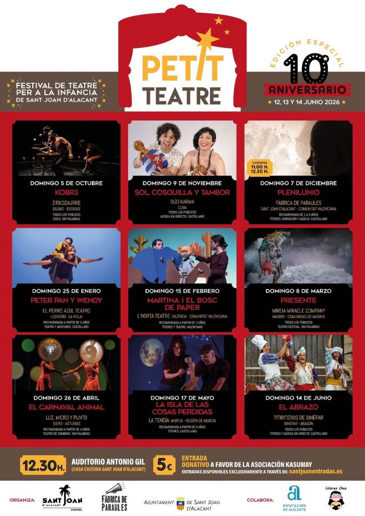 Festival de teatro familiar que celebra su décima edición, con funciones mensuales hasta junio.
